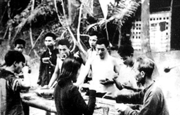 Công việc của Bác xong xuôi, Bác về đến cơ quan thì cơm nước cũng đã sẵn sàng. Sinh hoạt ở rừng còn thiếu thốn, kham khổ. Anh em muốn “bồi dưỡng” cho Bác, để Bác khỏe, nhưng lại sợ. Nhưng rồi cũng quyết định thịt một con gà “tăng gia”, kiếm ít măng rừng làm cơm mời Bác.