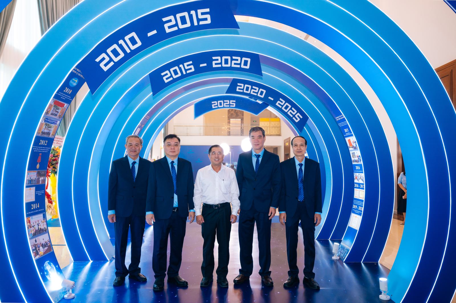Ông Dương Hồng Nhân - Bí thư Đảng ủy, Chủ tịch HĐTV Tổng Công ty Cấp nước Sài Gòn chụp ảnh cùng lãnh đạo Công ty.